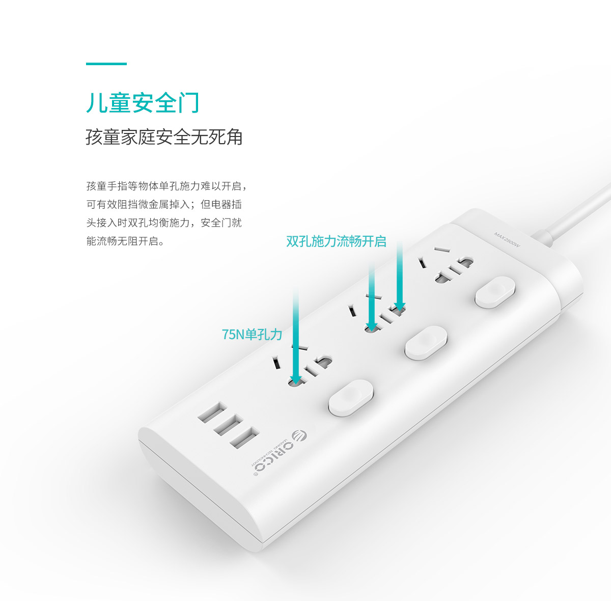新國標便攜桌面式排插,分控開關,2500W大功率