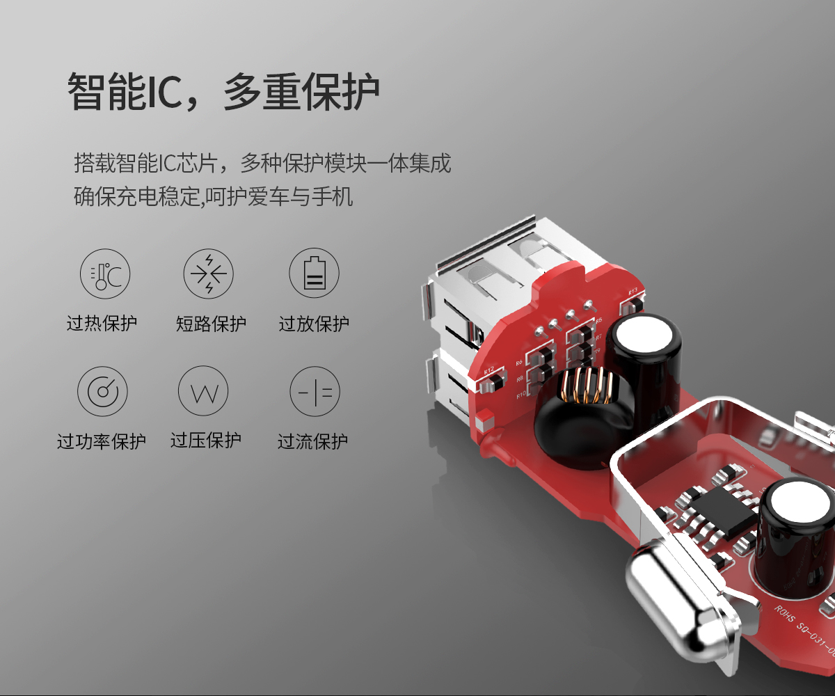 雙USB充電,多重保護,兼容各種USB設備