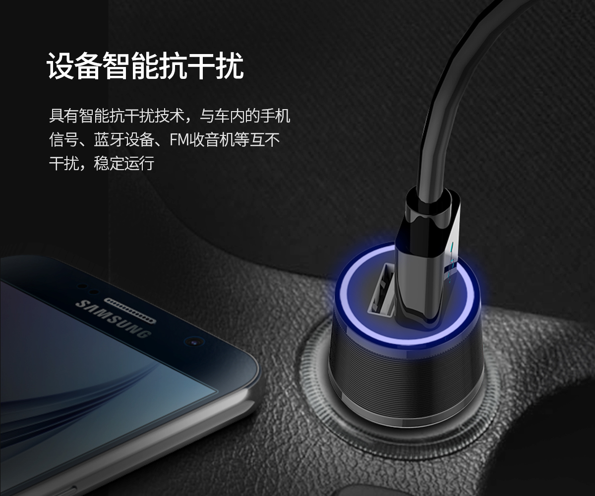 車載點煙口一拖二USB口抗干擾多重保護充電器