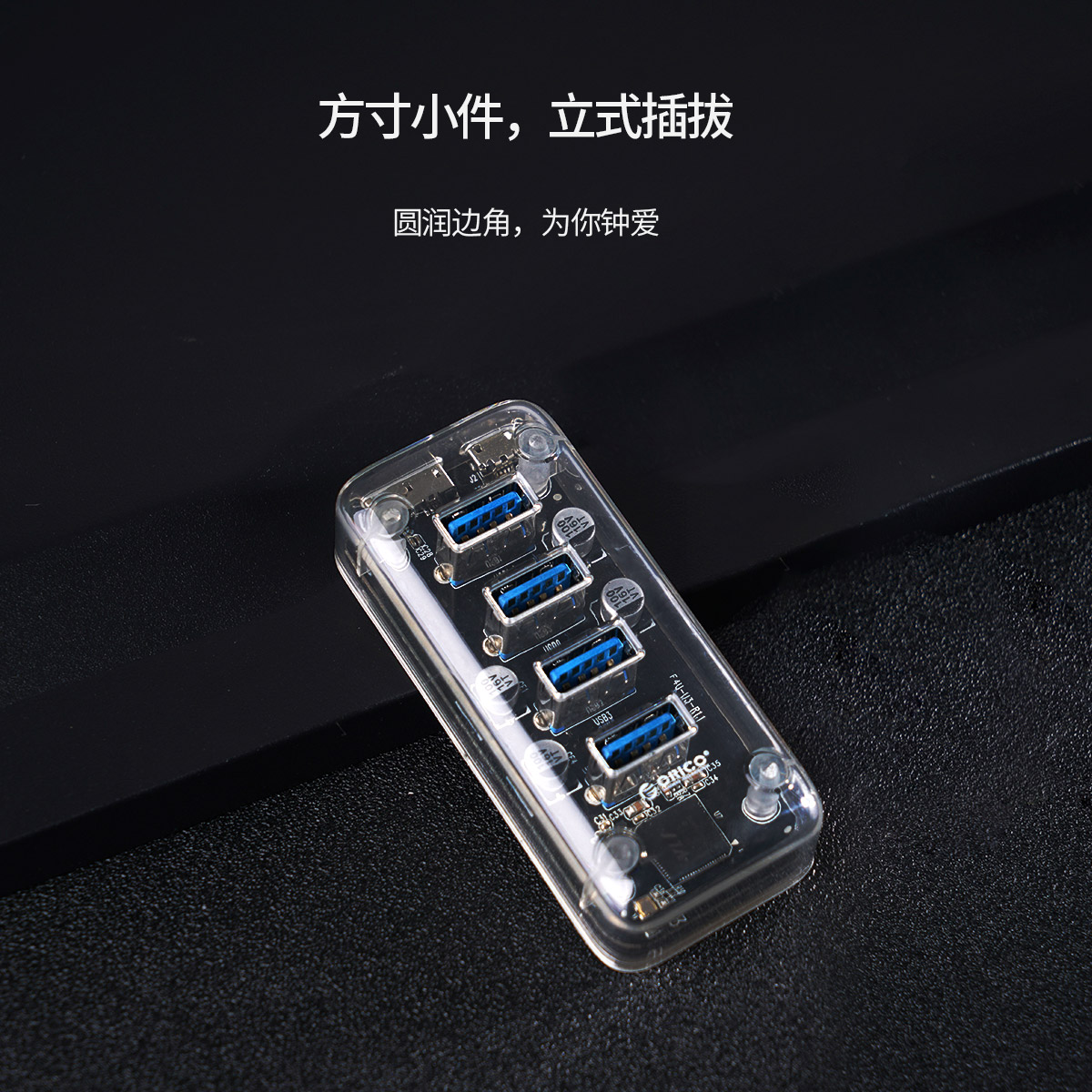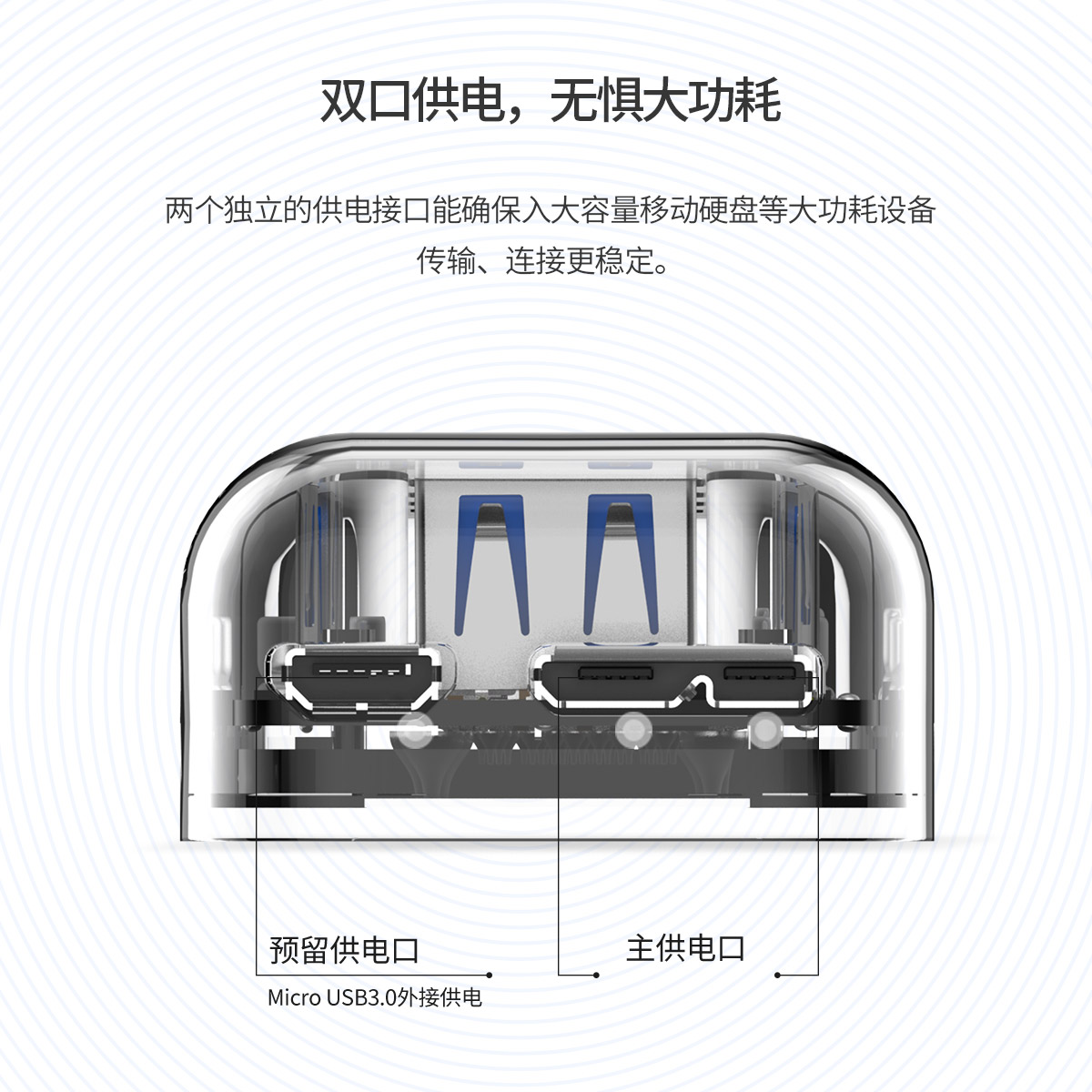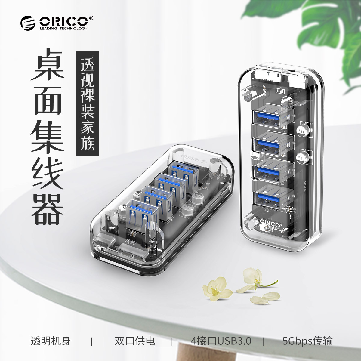 4口USB3.0透明桌面集線器,雙接口供電