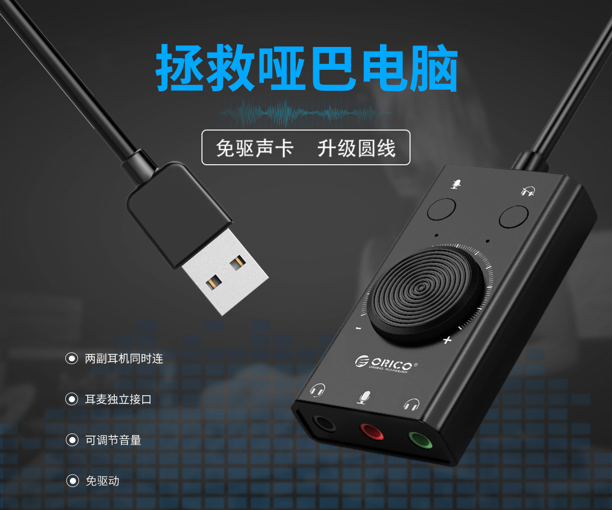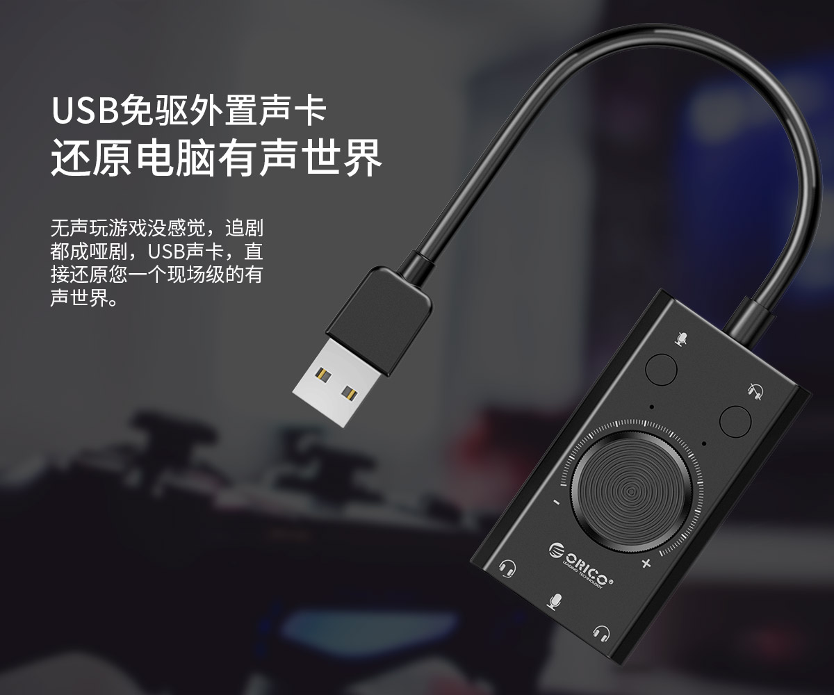 多功能免驅聲卡,三孔輸出,兼容主流設備,即插即用
