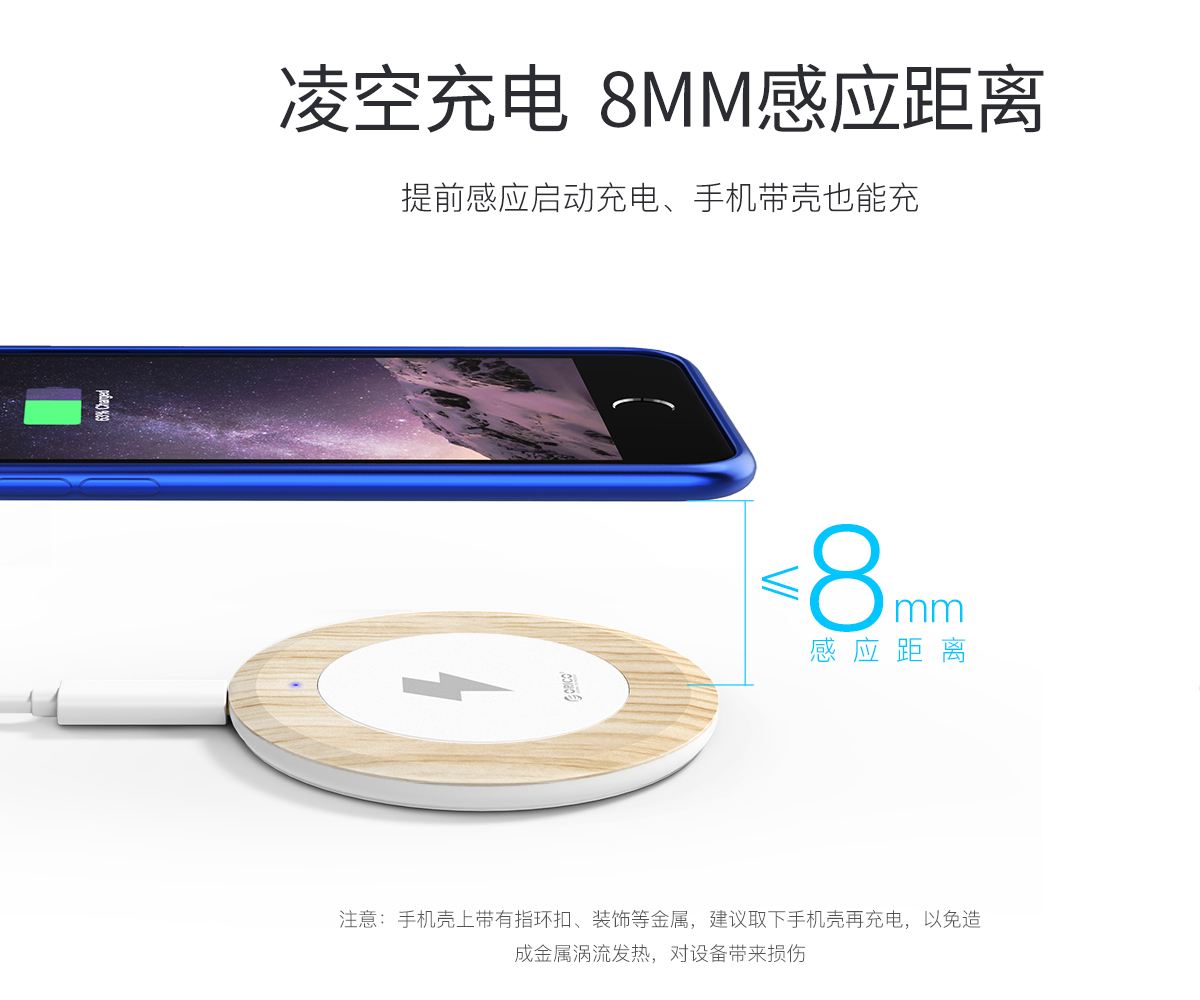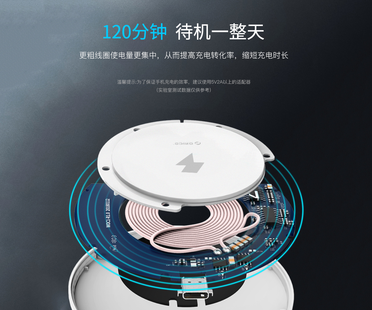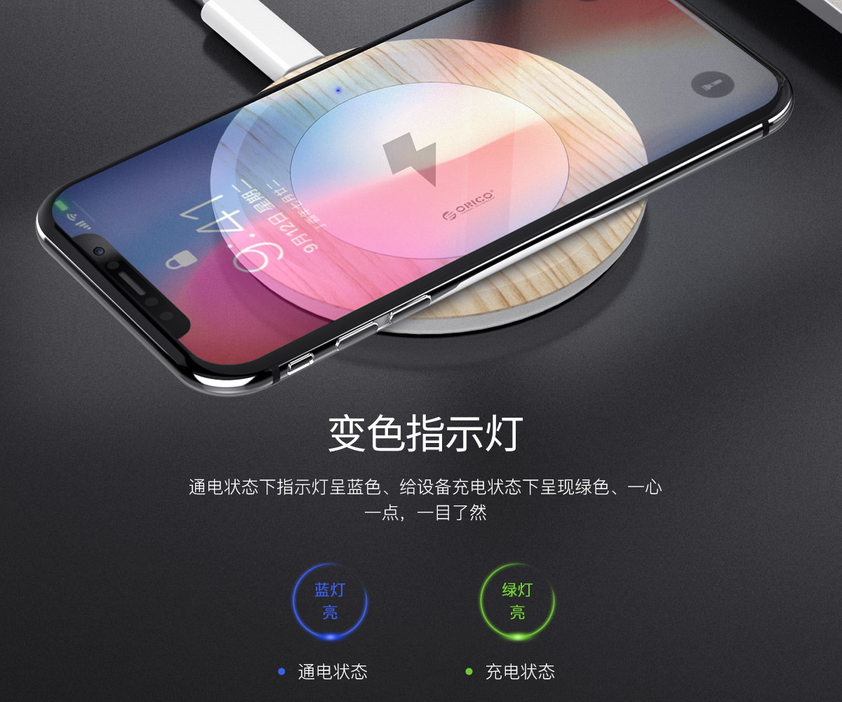 無線充電器采用高聚合工程材料 7mm超薄設計 5W總功率