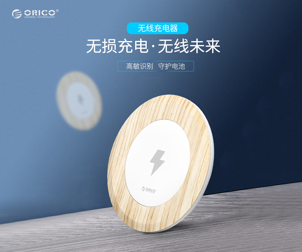5W木紋智能無線充電器