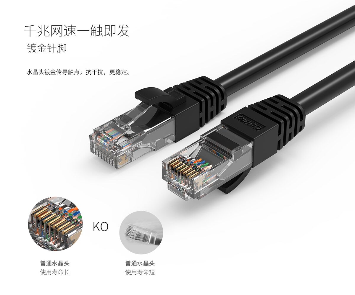 千兆帶寬,純銅線芯,8芯雙絞,PVC材質,普通水晶接口