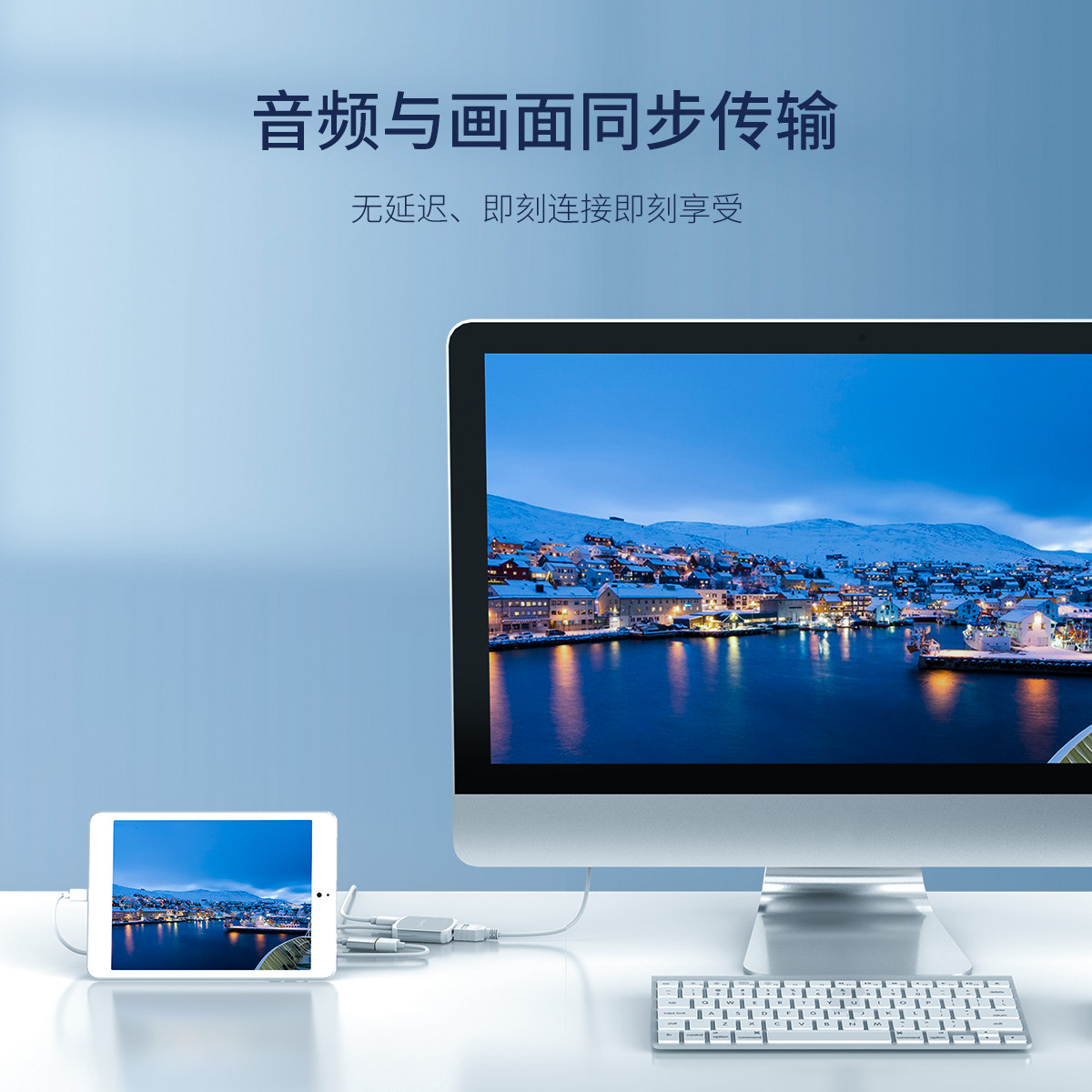 1080P@60HZ高清分辨率,HDMI/VGA雙接口,3.5MM獨立音頻輸出,外接供電,即插即用,鋁合金外殼
