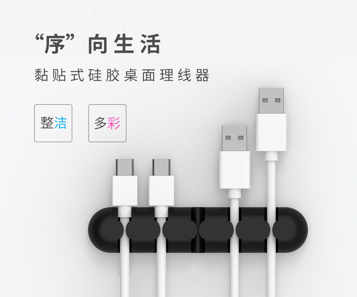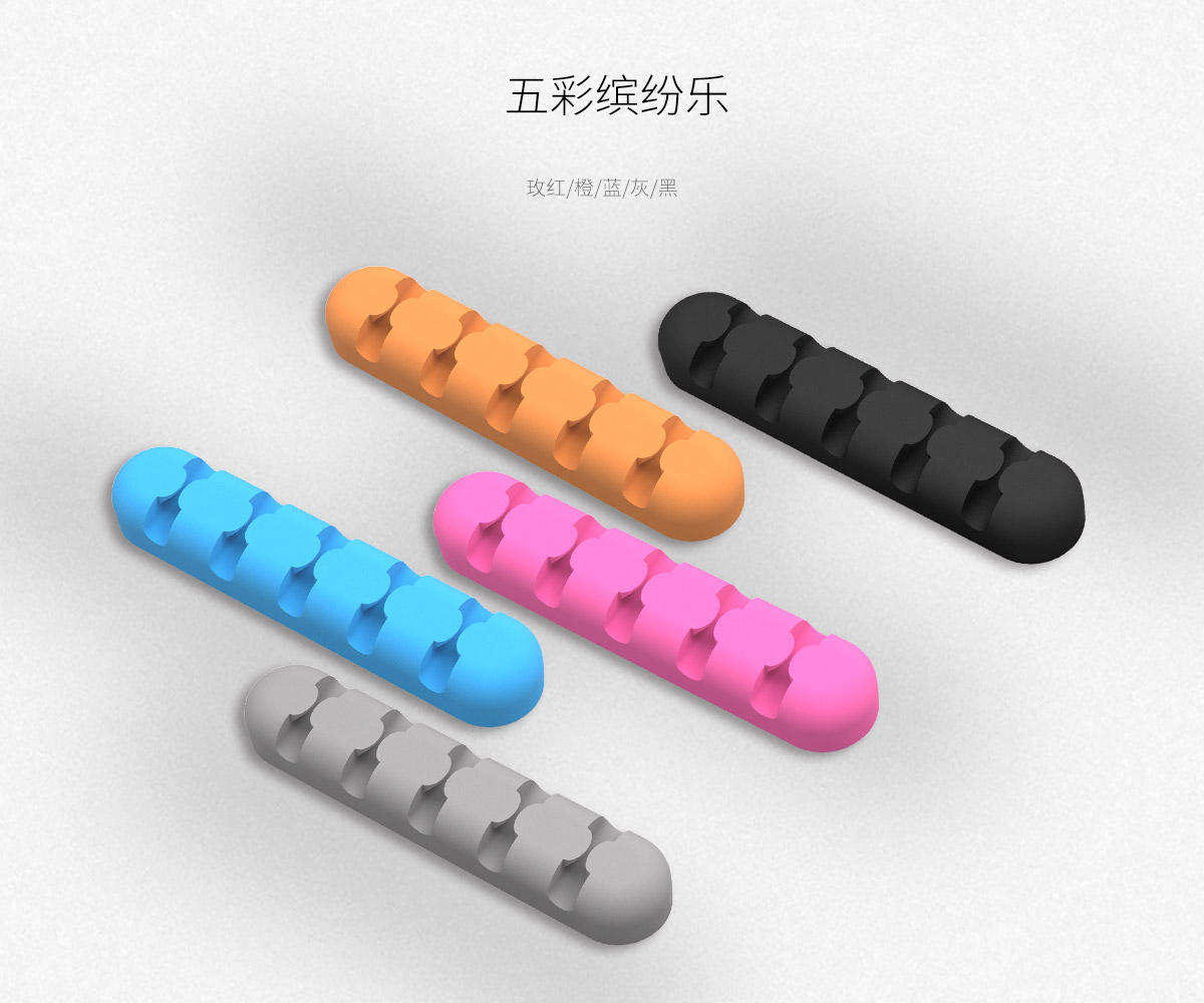黏粘式多色5道硅膠桌面理線器