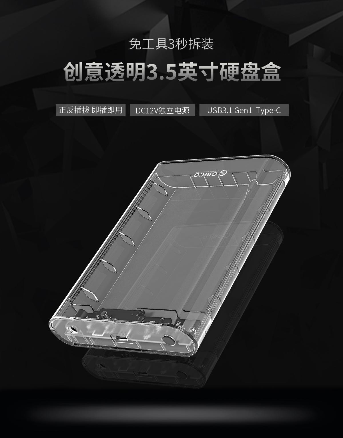 透明系列3.5英寸Type-C移動硬盤盒