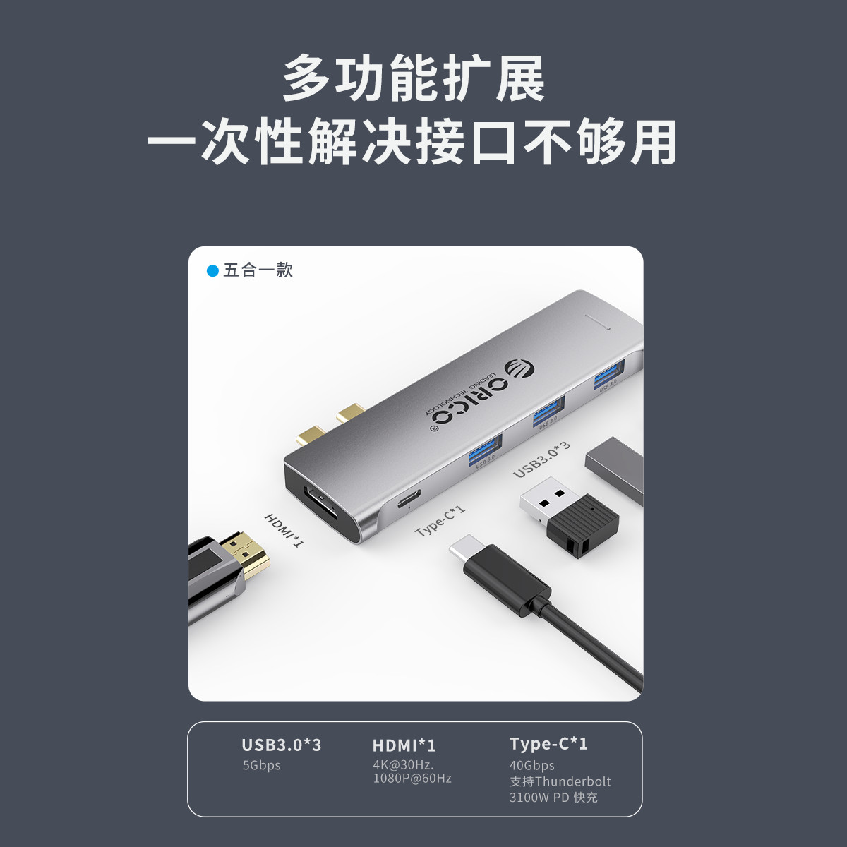Type-C八合一多功能擴展塢