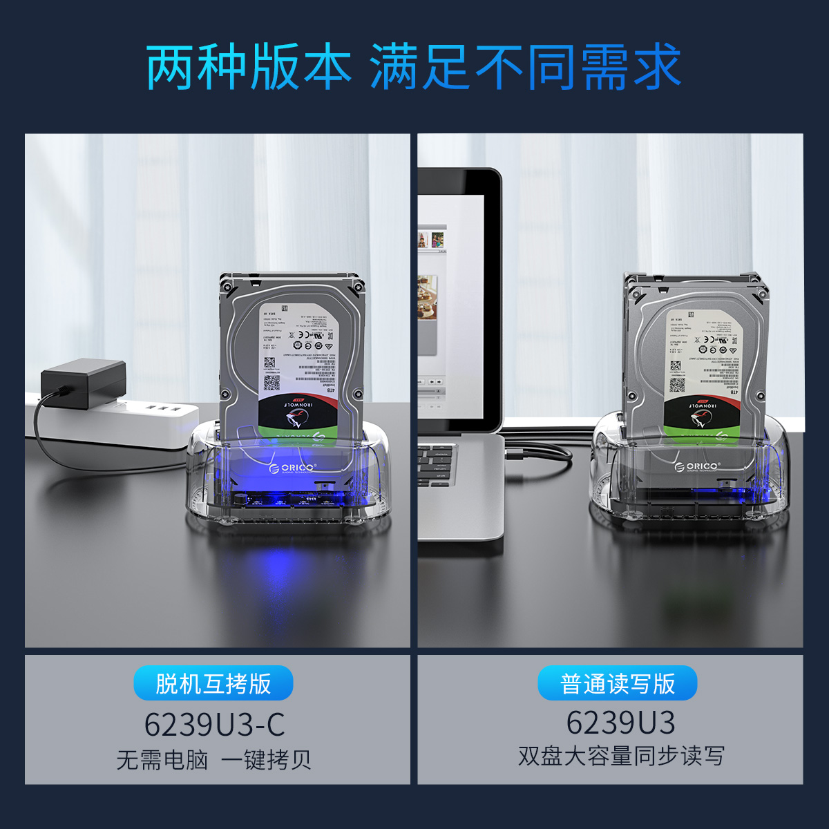 透明系列3.5英寸雙盤位USB3.0脫機拷貝硬盤底座