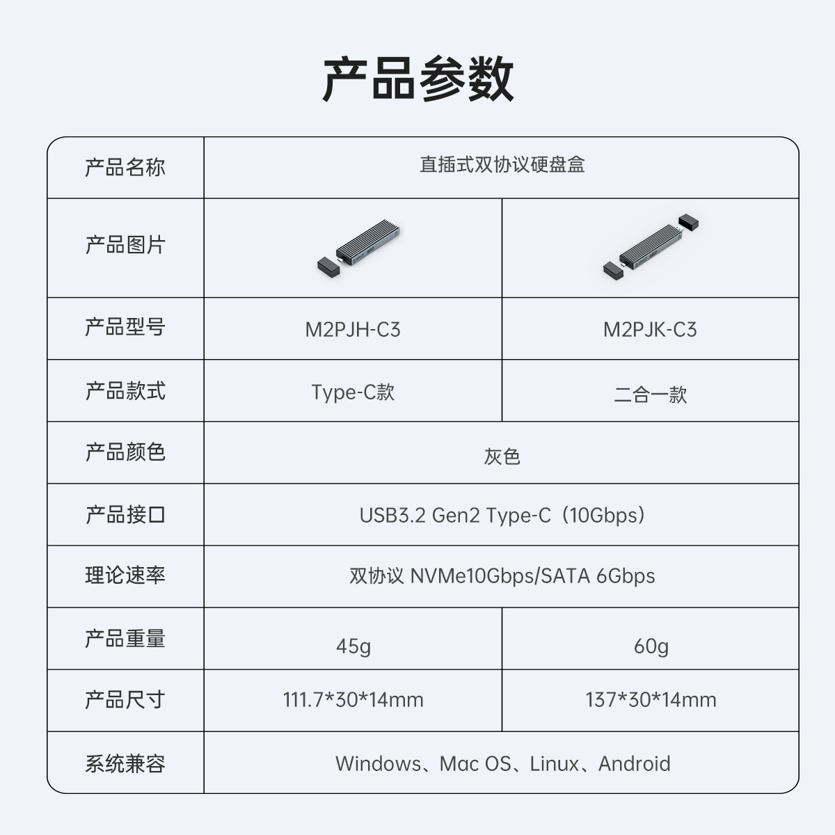 直插式M.2雙協議硬盤盒