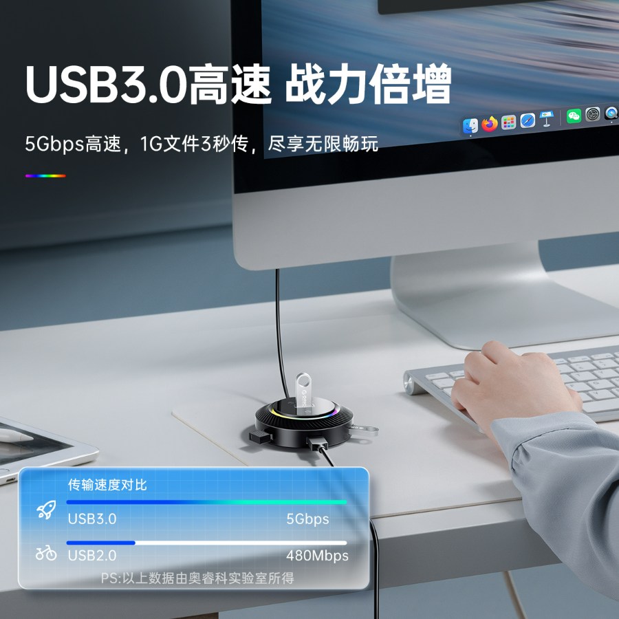 圓形桌面4口USB3.0集線器