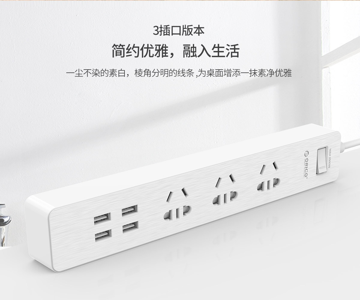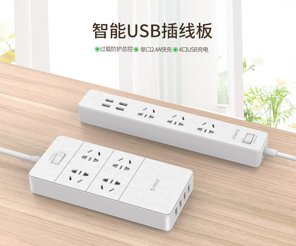木紋新國標(biāo)3AC口4usb口智能桌面USB插線板