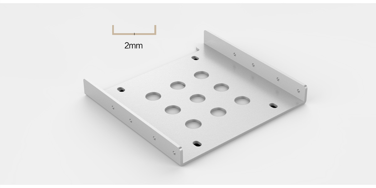 全鋁材質(zhì)設計,材質(zhì)厚度高達2mm,鏤空設計配合開放式硬盤安裝方式,為硬盤提供良好的散熱條件,保護您的硬盤,延長硬盤的使用壽命。