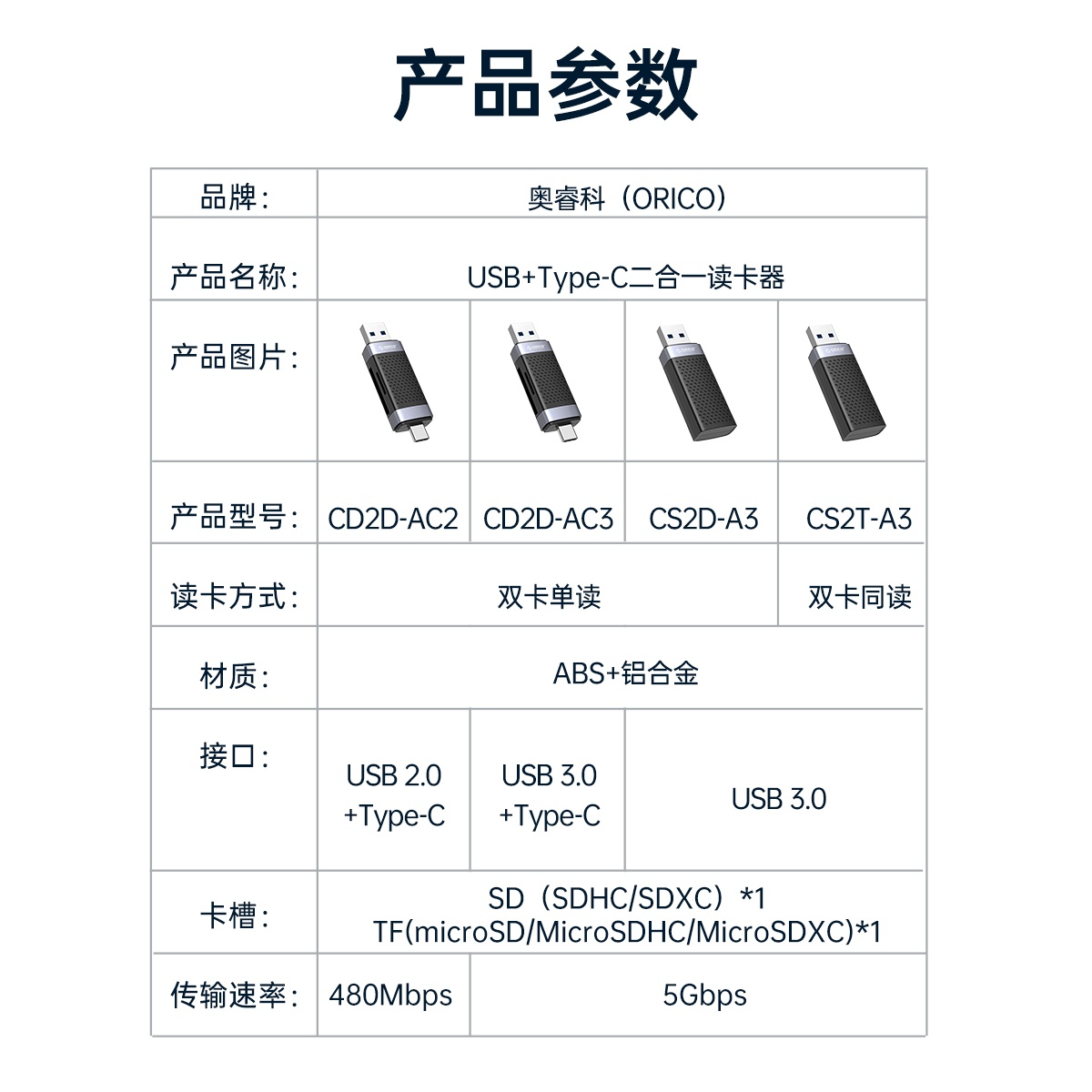 TF/SD雙口USB-A3.0讀卡器