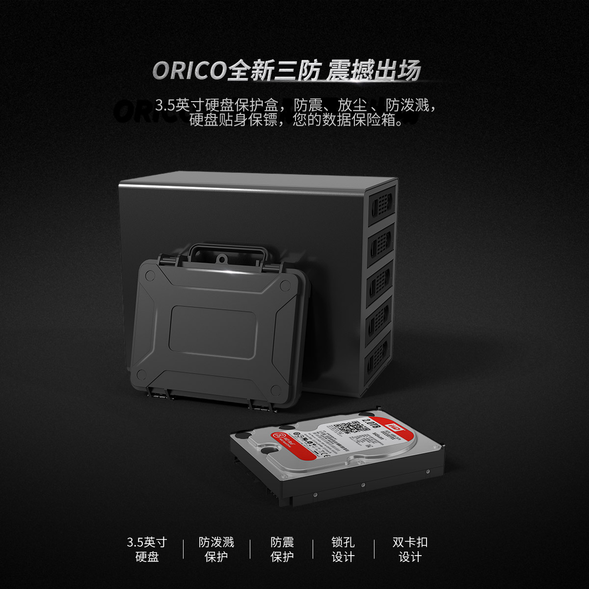 3.5英寸硬盤保護箱,雙卡扣提手設計
