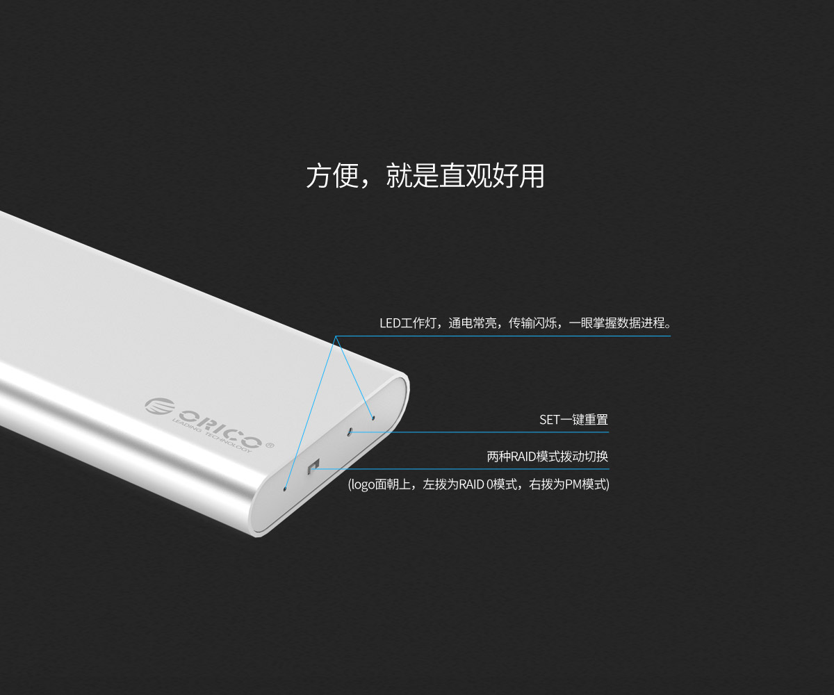雙盤位雙RAID模式,raid 0模式下,可實現高速讀寫,小巧便攜,Type-C接口