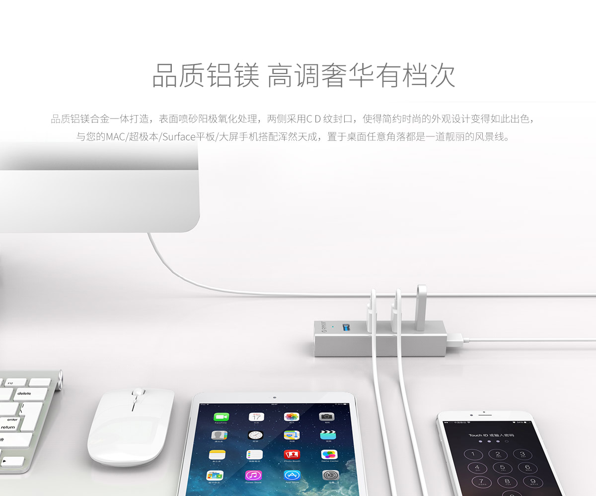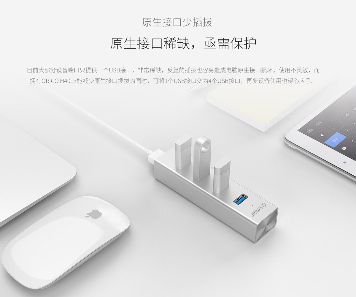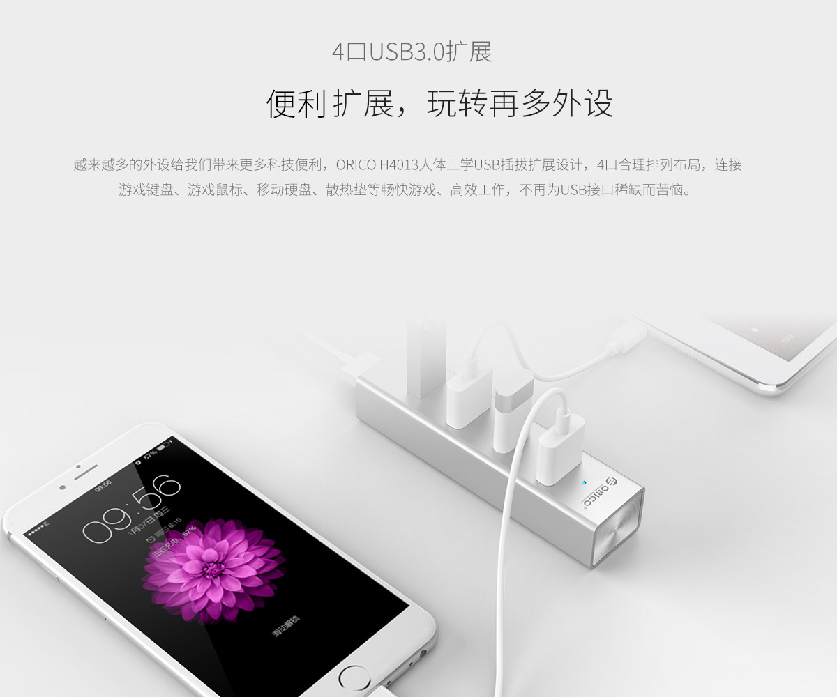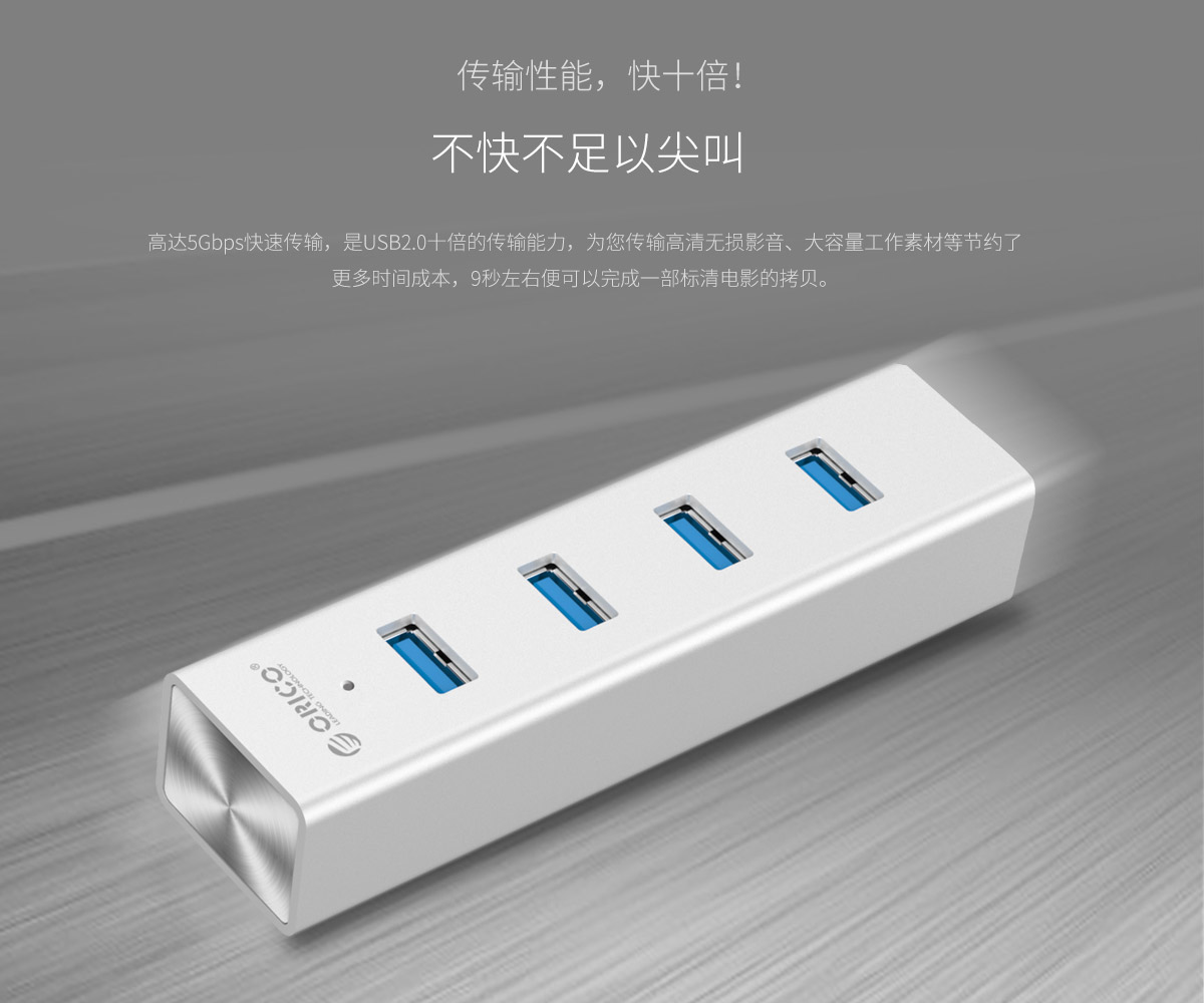 4口USB3.0擴(kuò)展 分離式設(shè)計(jì) 藍(lán)色LED指示燈 鋁合金打造
