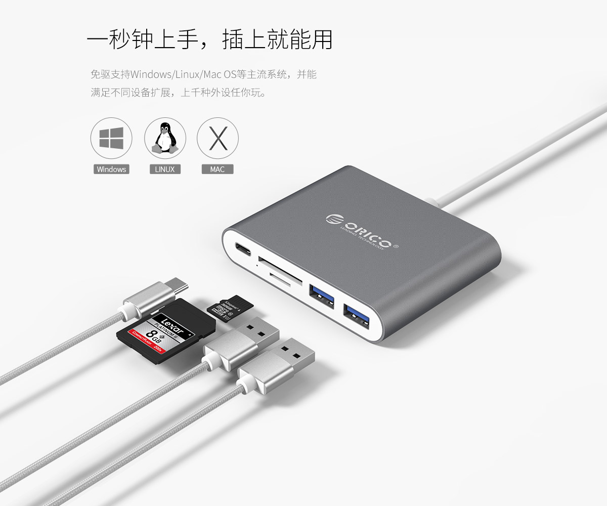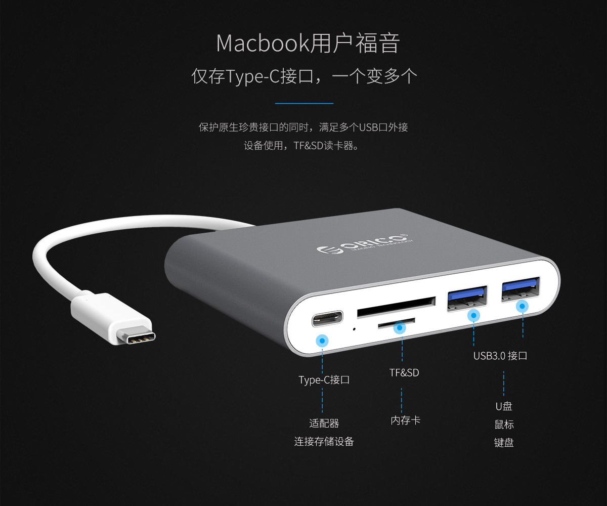 鋁合金Type-C轉Type-C/Type-A/TF/SD多功能擴展塢