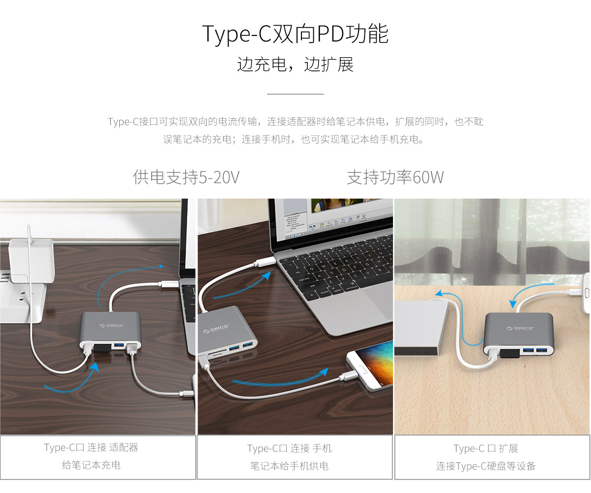 多接口多功能擴展 PD雙向接口 高清視頻擴展 一體式數據線 鋁合金機身