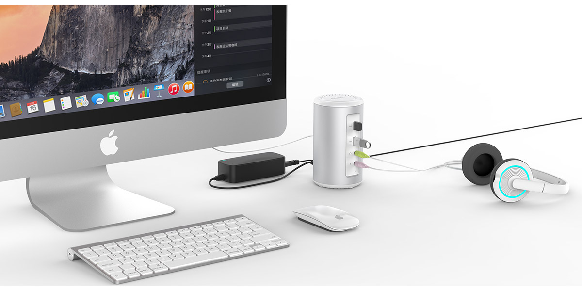 四周鋁鎂合金打造,陽極氧化處理,上下防火材料打造,整體設計外觀新穎,質感強烈,與蘋果Mac系列電腦搭配相得益彰。