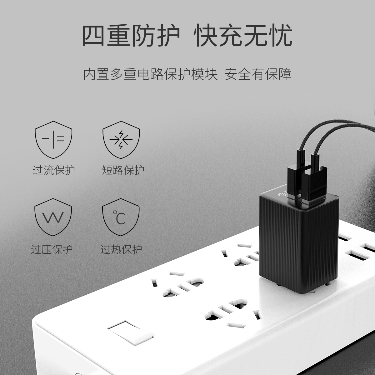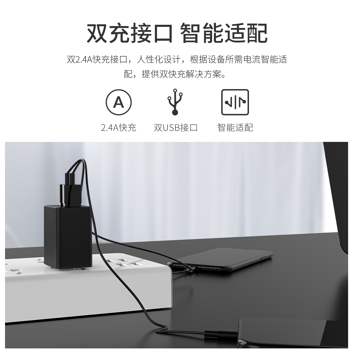 雙USB接口,插腳可折疊,2.4A大電流智能適應(yīng)快充,多國(guó)自適應(yīng)電壓。