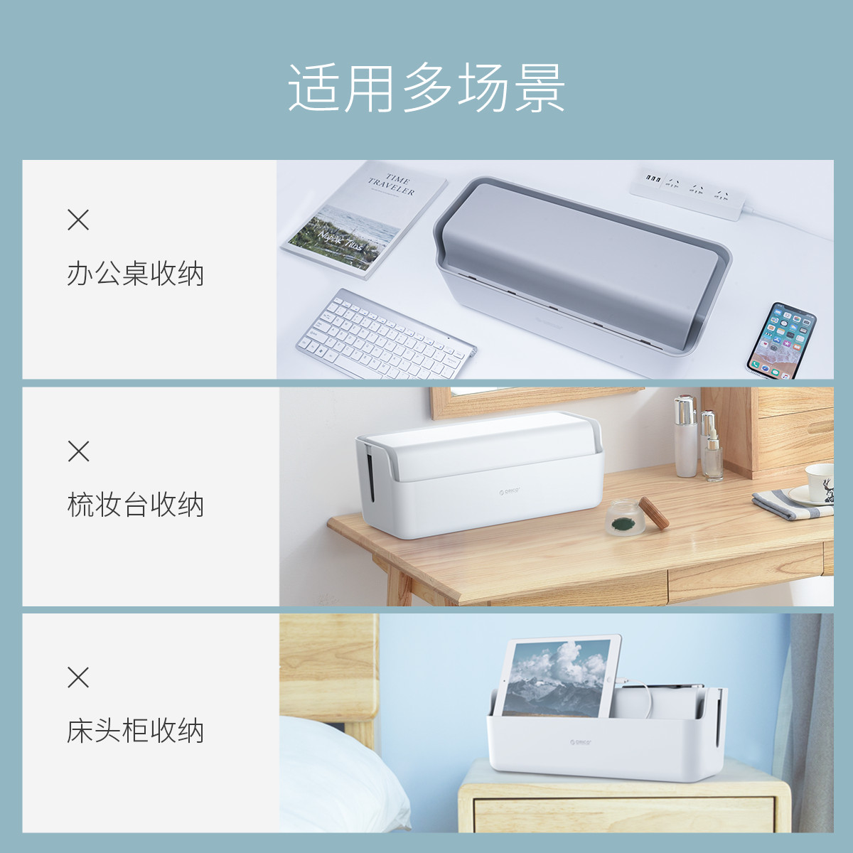 耐高溫ABS材質(zhì),多面開孔,可放置兩個(gè)排插
