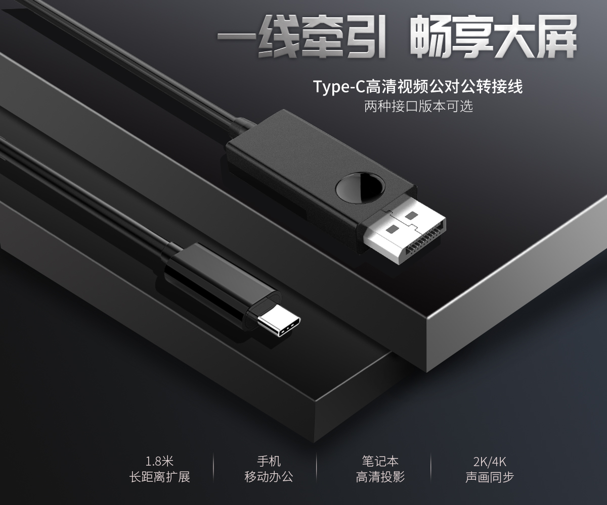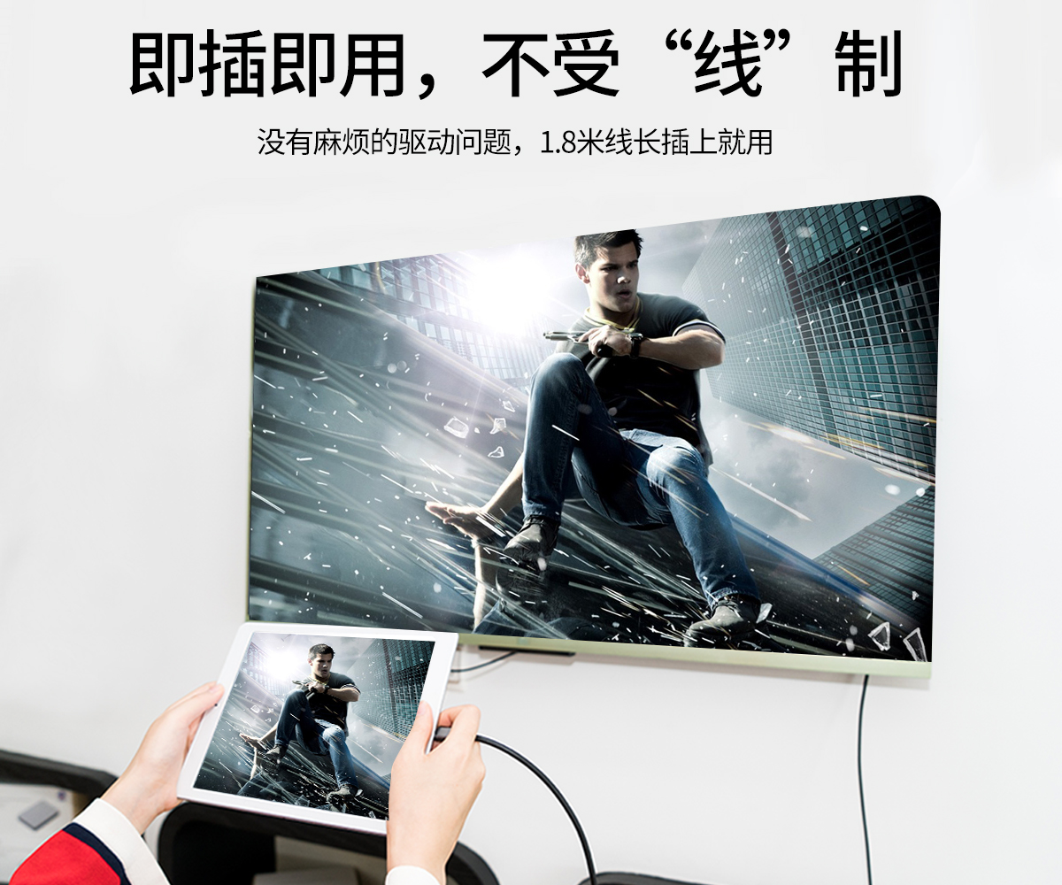 投屏辦公,同屏雙屏,即插即用,便攜,免驅,耐彎折,1.8m長距離擴展,手機,電腦,電視輕松同步