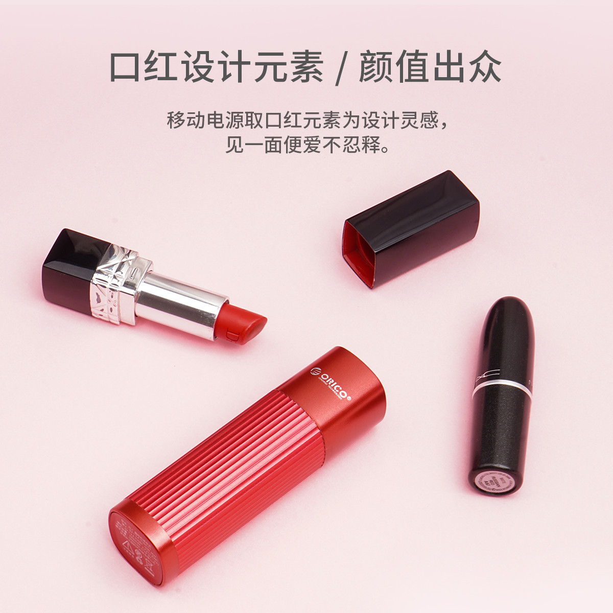 口紅設計元素,3200mAh容量,強悍兼容多系統,鋁合金+塑膠外殼,身材小巧,LED指示燈