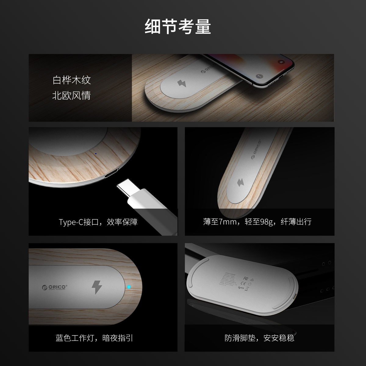 10W木紋智能雙線圈無線充電器