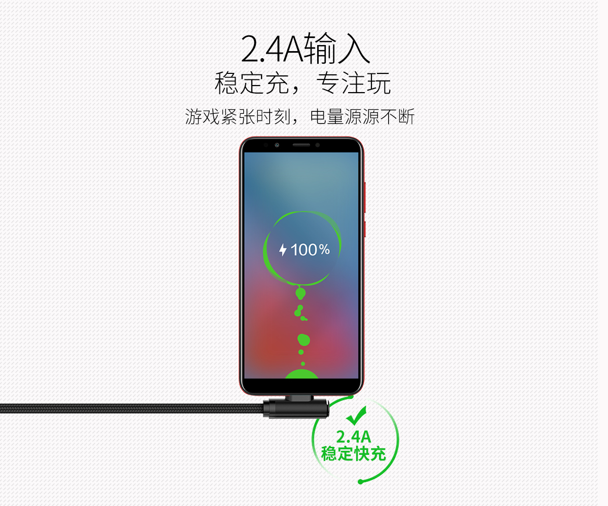鋁合金接口+尼龍編織,2.4A彎頭快充