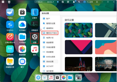 也可以點擊桌面的“設置”圖標,再點擊“壁紙與個性化”,完成壁紙設置。