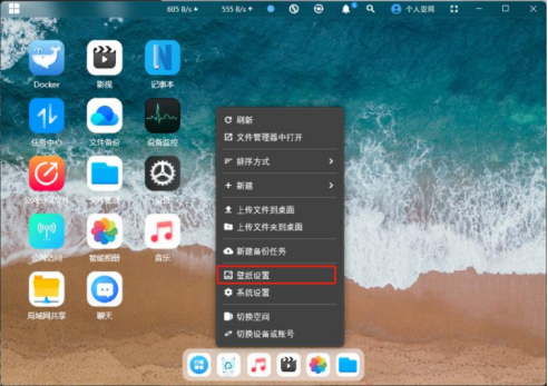 打開 賽博云空間 PC 客戶端首頁,在桌面右鍵選擇“壁紙設置”。